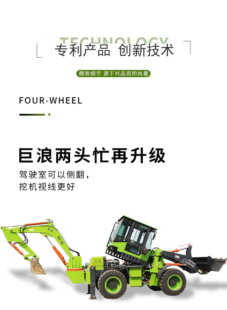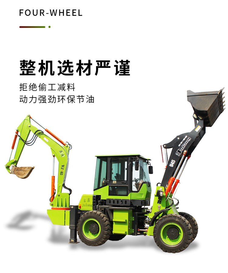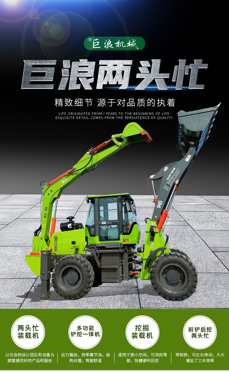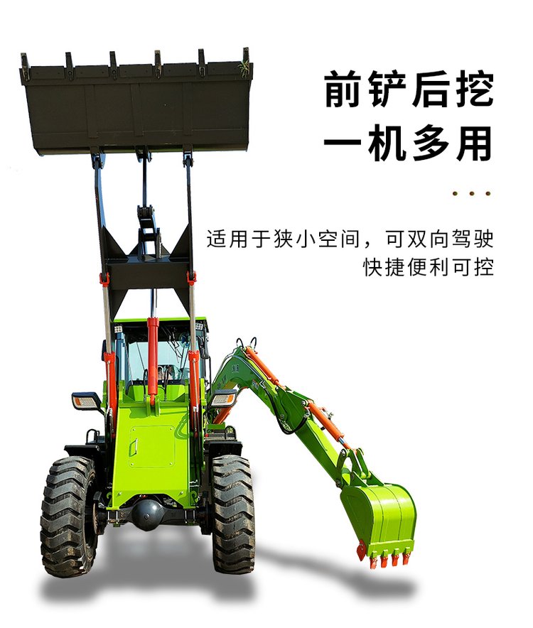 連接復合動作一拖二操作手柄,簡介易操作由于它具有共同的結構,前端是裝載設備,后端為發掘設備。在施工時,操作手只需求翻滾一下座椅,就可以結束從裝載機到發掘機的改動。鏟挖一體機首要用于城市和村莊的公路制作及維護、電纜鋪設、電力和機場工程、市政制作、農田水利制作、村莊住宅制作、開山取石以及各種小型建筑隊所從事的各種建筑施工工程。“兩頭忙”歸于小型多功能工程機械的一種,一般在大工程結束后的小工程中運用。它可配多種作業設備及輔具,進行發掘、鏟裝、路面破碎、平整場所、開挖水溝、鋪設管道等多種作業。